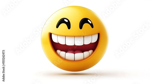 Fototapeta premium Joyful 3D Emoji Happy Smiley Face Big Grin Laughter Fun Positive Emotion...
