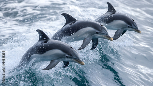 Fototapeta premium Joyful dolphins dance through the sparkling, azure ocean