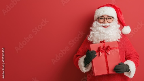 Naklejka premium Joyful Female Santa Claus with Gift and Shopping Bag Spreading Holiday Cheer,...