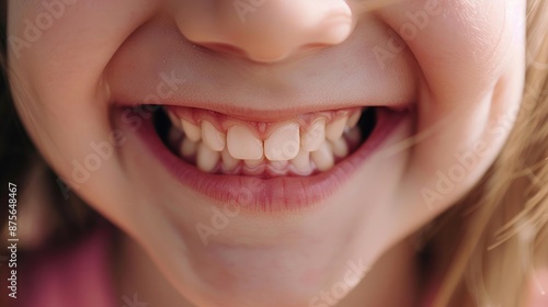 © Mommy_Sunshine, Obraz premium Joyful Gaps: Close-Up of a Child's Smile with Missing Baby Teeth