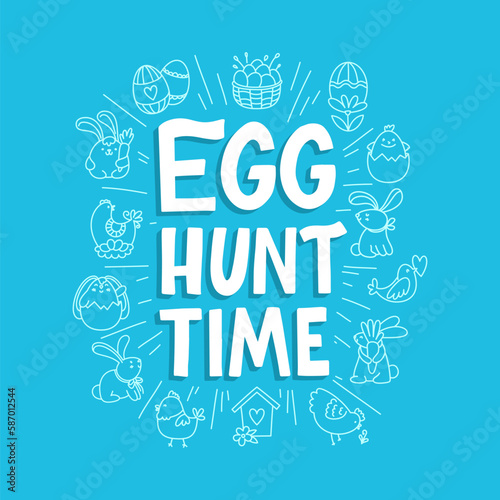 © Elena, Fototapeta premium Joyful Happy Easter hand-drawn lettering for greeting cards, social media posts, stickers. Colorful candy pastels spring vector illustration in flat style.