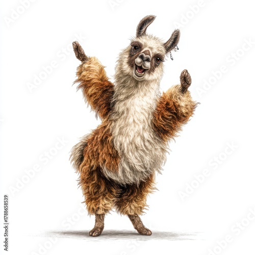 © Serhii, Naklejka premium Joyful Llama Dance. Charming Illustration of a Cheerful, Playful Llama in Motion on a Clean White Background