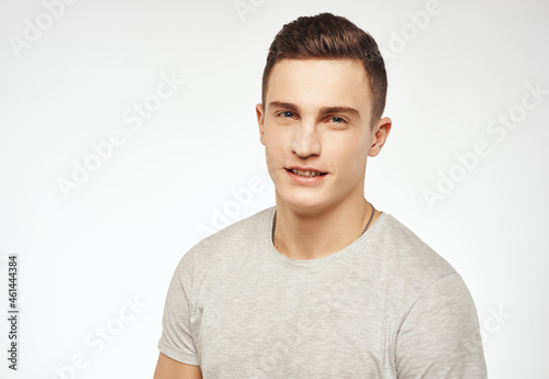 Fototapeta premium joyful man gesturing with his hands emotions good mood close-up