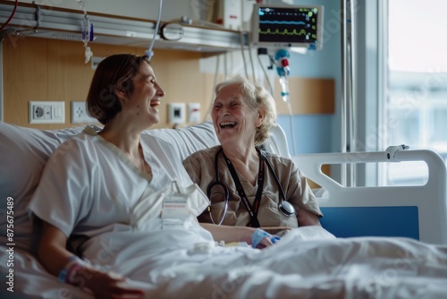 © Amni, Obraz premium Joyful Moment in a Hospital Room