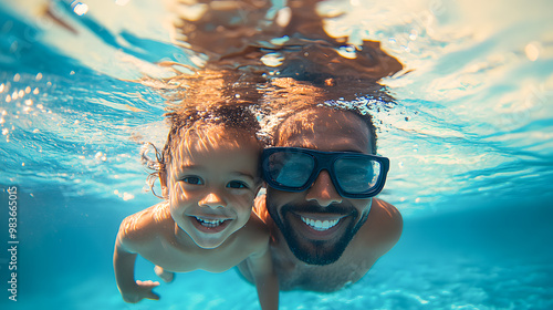 Naklejka premium Joyful Moments in the Pool with Child and Parent