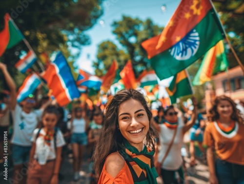 Fototapeta premium Joyful Multicultural Group Celebrating Diversity with International Flags in...