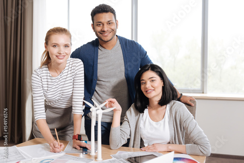 Obraz premium Joyful nice engineers looking at you