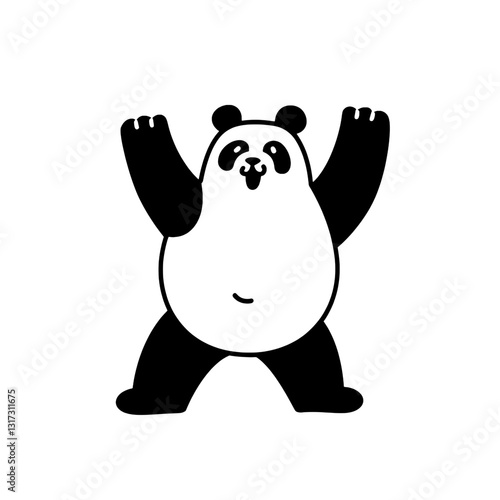 Fototapeta premium Joyful panda celebrating with raised paws in a playful and spirited gesture in a whimsical vector illustration