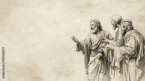 Fototapeta premium Joyful Reunion of the Prodigal Son Celebrated by Father with Best Robe and Ring Expressing Surprise and Joy at His Return