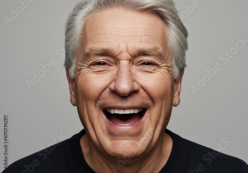 © JOKI, Obraz premium Joyful senior man with gray hair laughing heartily.
