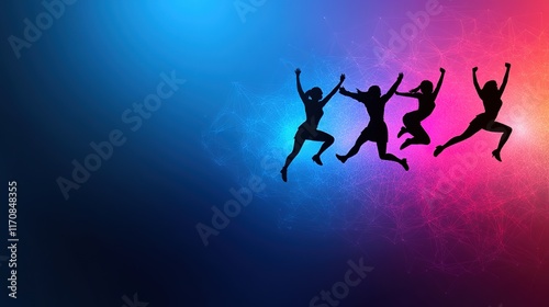 Fototapeta premium Joyful Silhouettes of People Jumping Against a Colorful Background