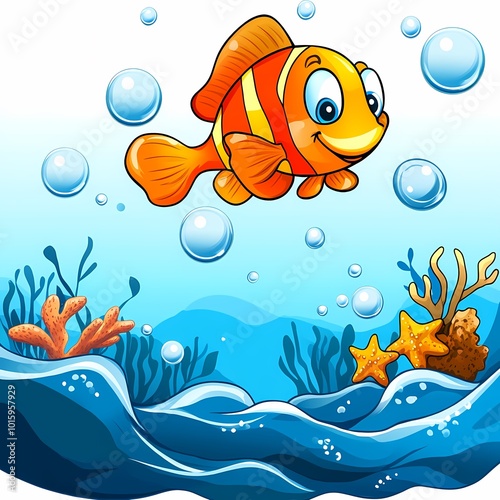 Fototapeta premium Joyful Underwater Scene with Cute Fish and Sea Stars