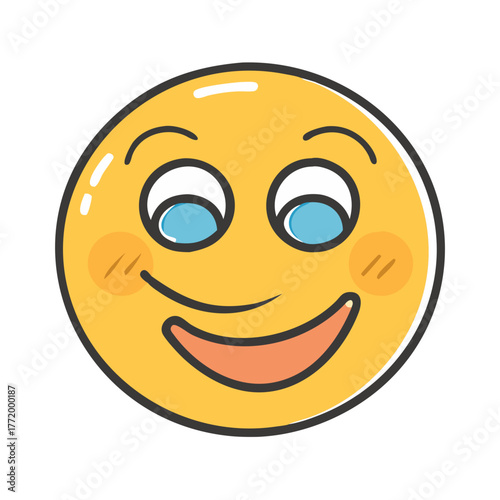 Fototapeta premium Joyful yellow smiley face vector illustration with big blue eyes and wide smile