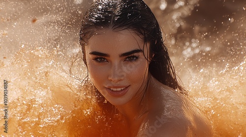 © BonzEarthsnapper, Obraz premium Joyful Young Woman in Watercolor Painting Style