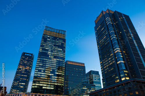 Obraz premium 夕暮れ時のJPタワーと丸ビル