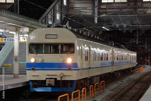 © Fujibusa, Fototapeta premium 地上駅時代のJR北陸本線富山駅に停車する419系電車_2010/3/20撮影