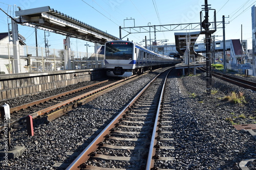 © FRANK, Fototapeta premium 常磐線の線路 / 茨城県の常磐線で、JR佐貫駅近くの線路(複線)を撮影した写真です。