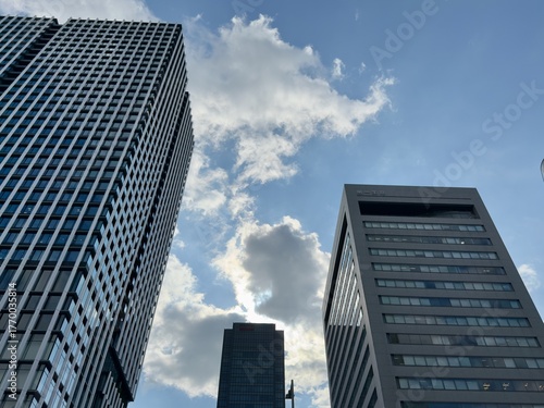 © hiroYamaD, Obraz premium JR大阪駅雲の多い空とビルのある風景