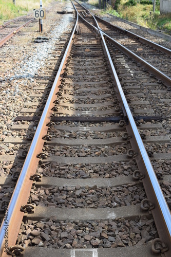 © FRANK, Fototapeta premium 線路(鶴岡駅近く)/山形県の庄内地方で羽越本線の線路(単線)を撮影したローカルイメージの写真です。JR鶴岡駅近くで撮影した写真になります。