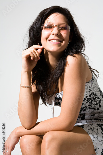Fototapeta premium Jugentliche im Sommer in weißem Kleid sitztend und lachend