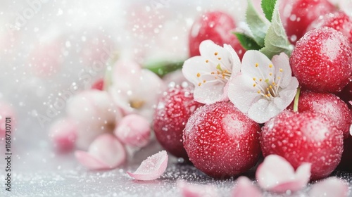 © Priyanut, Fototapeta premium Juicy Cherries & Delicate Blossoms: A Springtime Delight!
