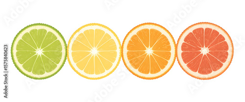 Fototapeta premium Juicy Citrus Slice Arrangement – Grapefruit, Orange, Lemon, and Lime –...