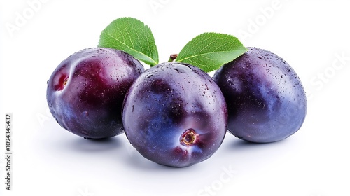 © heinng, Obraz premium Juicy Plums: Fresh Harvest Close-Up on White Background. AI Generated