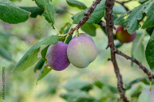 Obraz premium Juicy plums on a tree branch