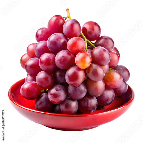 © Momna, Fototapeta premium Juicy Red Grapes on a Red Plate: Fresh, Ripe, and Ready to Eat