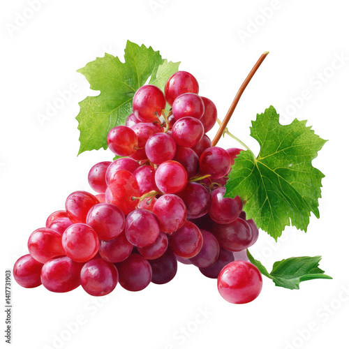 © mankong, Fototapeta premium Juicy Red Grapes with Green Leaves Fresh Bunch of Ripe Fruit