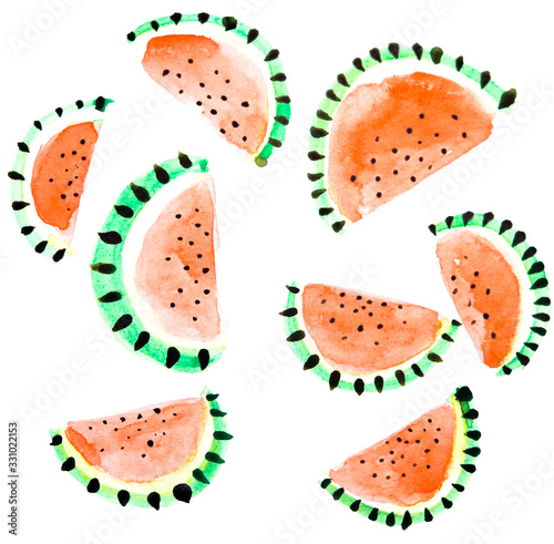 © Ирина Фроликова, Fototapeta premium juicy watermelon slices on a white background
