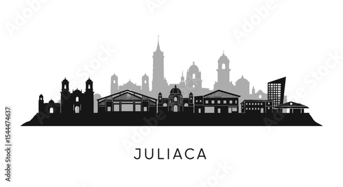 © godsfavoritearts, Naklejka premium Juliaca Skyline Cityscape Silhouette Peru.