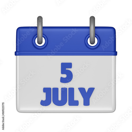 © ppalm design, Fototapeta premium 5 July Calendar 3d icon