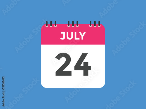 Fototapeta premium july 24 calendar reminder. 24th july daily calendar icon template. Vector...