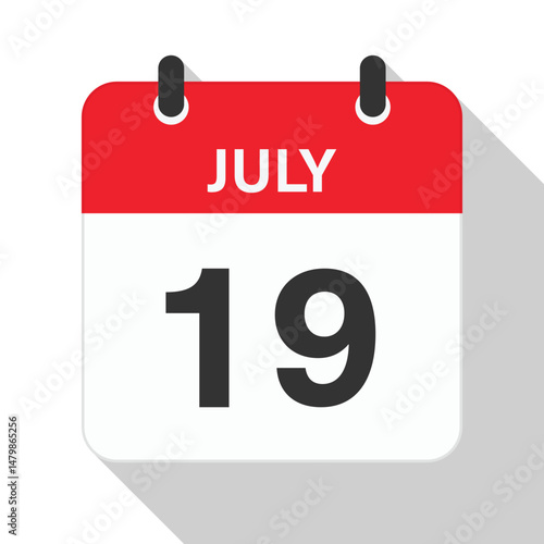 Fototapeta premium July 19 Daily Calendar. Red Theme on White Background