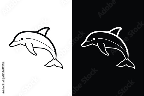 Obraz premium Jumping Dolphin Outline Icon. Clean Vector for Digital Use