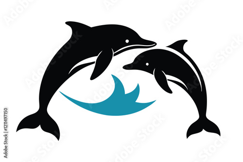 © shopone, Fototapeta premium Jumping Dolphin Silhouette with Splashing Waves Vector Illustration
