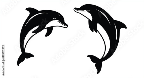 Naklejka premium Jumping dolphin silhouettes vector art, dolphin silhouettes vector