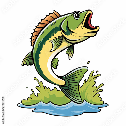 Obraz premium Jumping Fish Vector: Freshwater Fishing and Nature Illustration"