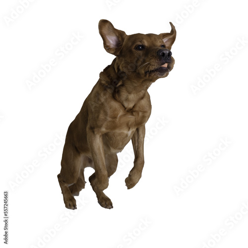 © KRIS-ART, Obraz premium jumping labrador on a black background