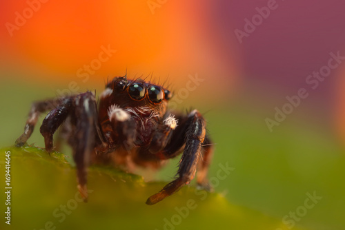 Fototapeta premium Jumping Spider. Colorful nature background.