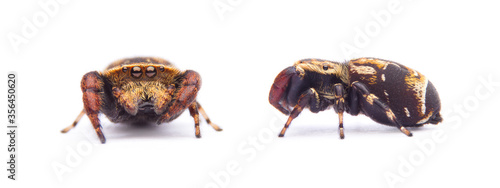 © pichit1422, Obraz premium jumping spider isolated on white background.