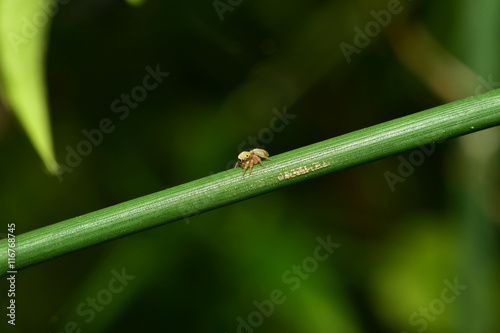 © amornchai, Obraz premium jumping spider. Macro. Small jump spider in the forest Thailand