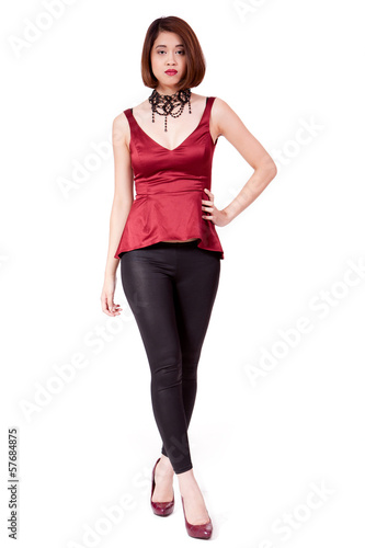 © juniart, Fototapeta premium junge asiatische attraktive frau mit roten lippen isoliert