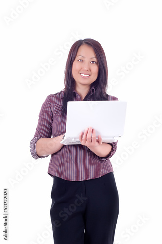 © Bumann, Fototapeta premium Junge attraktive asiatische Frau mit Laptop vor weißem Hintergrund