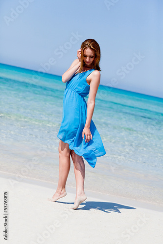 © juniart, Fototapeta premium junge attraktive frau im sommer am strand