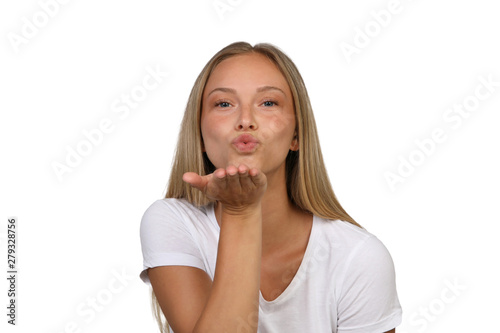 © Joerch, Fototapeta premium Junge blonde Frau macht eine Kußgeste