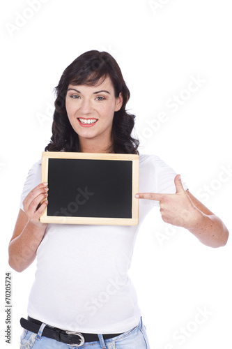 Fototapeta premium Junge Frau mit Kreidetafel