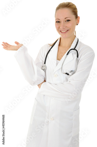 Fototapeta premium Junge Frau präsentiert