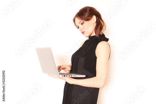 © Peter Atkins, Naklejka premium junge Geschäftsfrau mit Laptop
